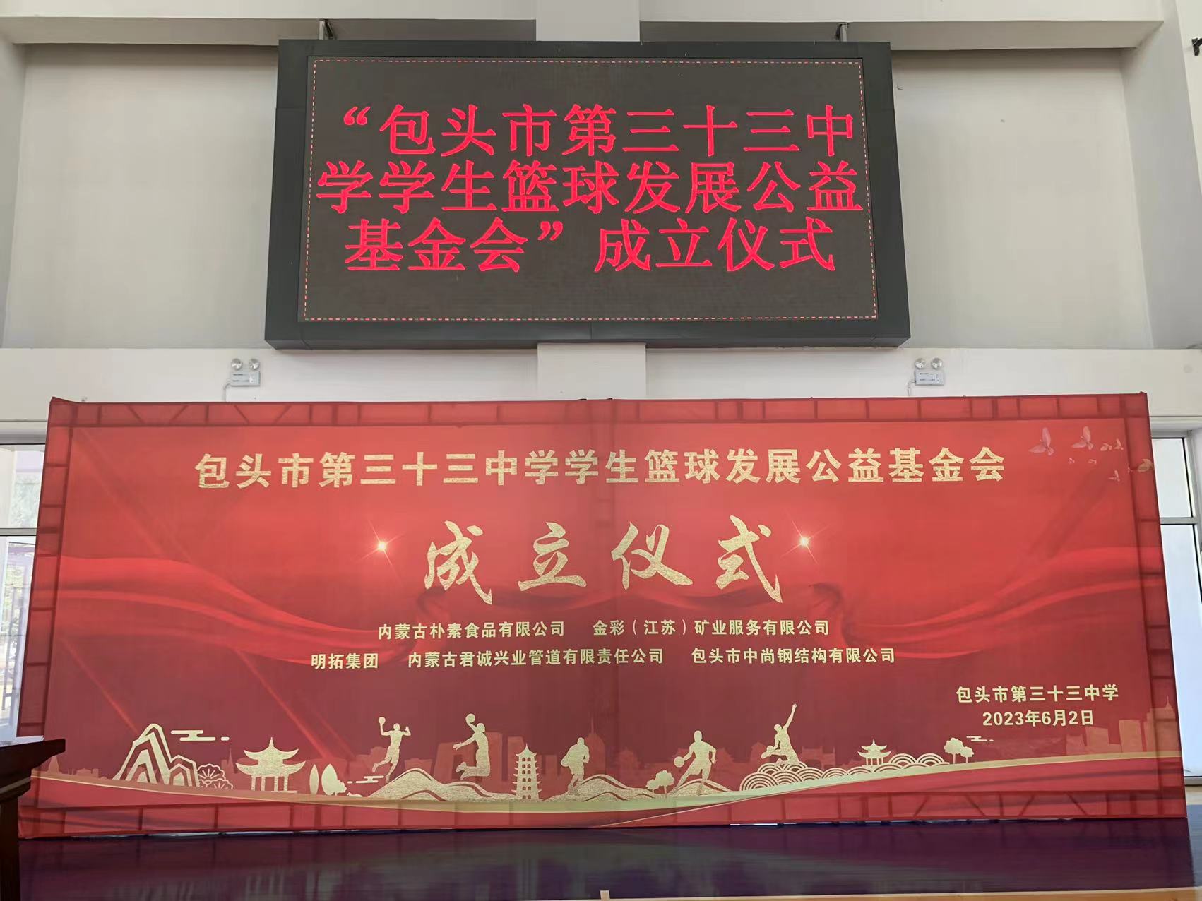金彩實(shí)業(yè)集團(tuán)攜手“包頭市第33中學(xué)中學(xué)生籃球發(fā)展公益基金會(huì)”走進(jìn)校園,傳遞籃球夢(mèng)想